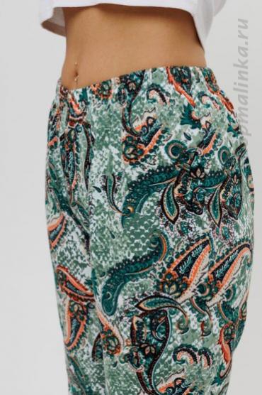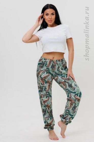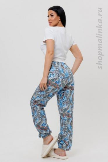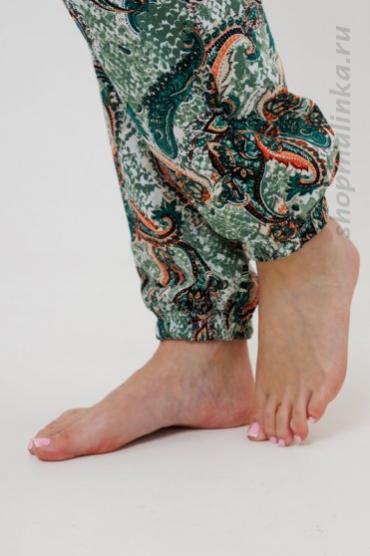 Женские всесезонные брюки с восточным орнаментом, комфортной посадкой по линии талии, из трикотажного полотна кулирная гладь, длинные, прямого силуэта, по низу собраны на резинку. Пояс с эластичной и мягкой резинкой. Изделия из натурального хлопка дышащие и легкие. Комфортная повседневная модель. Рекомендуется бережная стирка при 30С. После стирки вещи могут дать усадку.