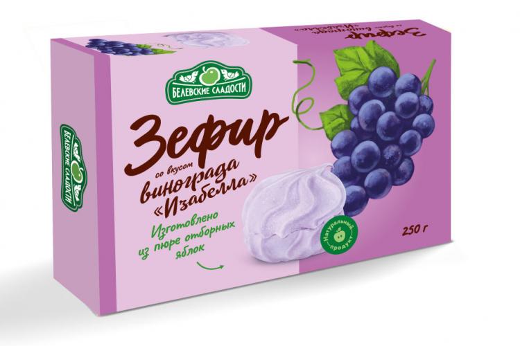 Зефир «Изабелла» приготовлен из пюре отборных яблок на кондитерской фабрике «Белевские сладости». Воздушное лакомство вкусно пахнет виноградом сорта Изабелла, тает во рту, оставляя приятное послевкусие. Зефир упакован в подарочную коробку.