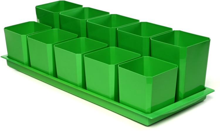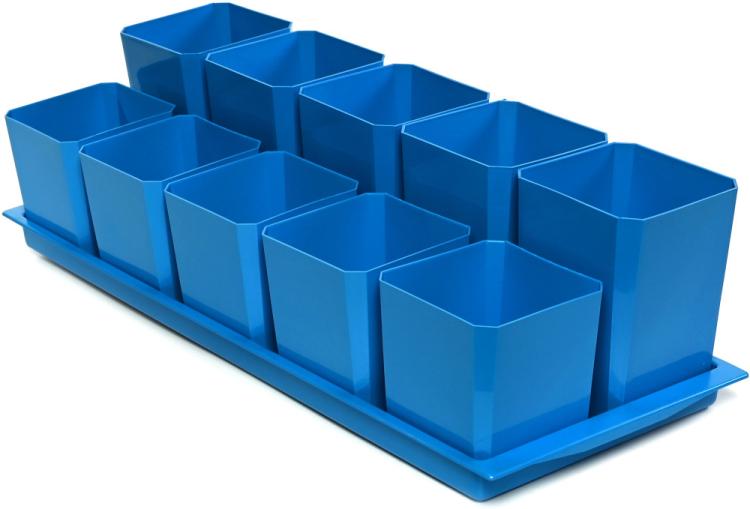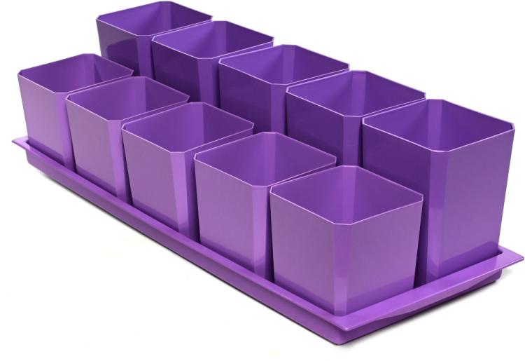 Данные горшочки уникальны и совсем не похожи на другие, по многим параметрам. Индивидуальный горшочек обеспечивает защиту от распространения болезней и полностью исключает конкуренцию между растениями. Большой объем горшочка - 0,5л, 075. обеспечивает хорошее развитие корневой системы. Такой объем позволяет выращивать рассаду без дополнительной пересадки. Наборы горшочков изготовлены из прочной пластмассы. Они не деформируются и не ломаются. Данные горшочки прослужат очень долго. Срок службы более 5 лет. Каждый горшочек имеет выдвижное донышко, которое снабжено дренажным отверстием. Оно обеспечивает удобную, безболезненную для растений, высадку в открытый грунт. Мы предлагаем пластиковые горшочки нескольких цветов. Это удобно для разделения молодых кастений по сортам.