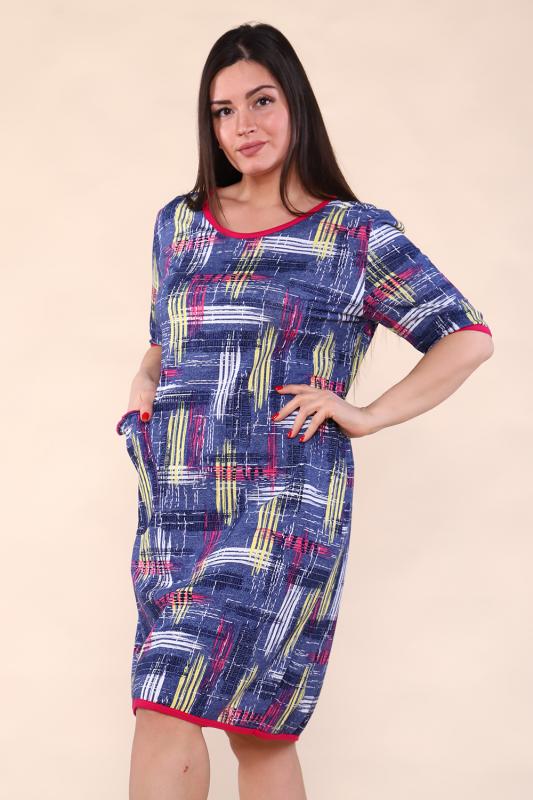 Туника женская свободного силуэта с удлиненным рукавом, полочка оформлена декоративным карманом на сборке, горловина, рукава и низ изделия обработаны под бейку. Рост модели на фото 165 см, размер 48.