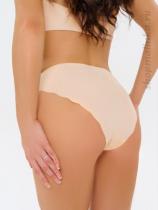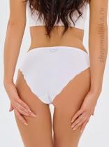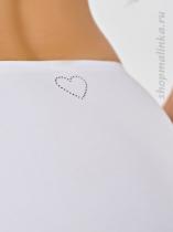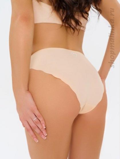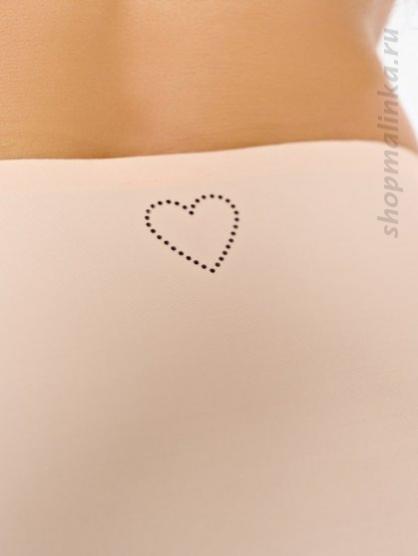 Трусики бикини женские из однотонного эластичного полотна с фигурной лазерной отделкой края. На задней части изделия сердечко из термостраз. Бесшовное бельё — это настоящая находка для тех женщин, которые предпочитают облегающую одежду. Самый важный плюс — это незаметность под одеждой. Благодаря специфике пошива и отсутствию декоративных деталей, такие изделия очень комфортны в ношении, поскольку практически не чувствуются на теле. Многие женщины предпочитают подобное бельё для спортивных занятий, а также во время беременности.