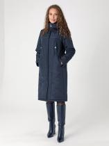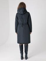 Зимнее пальто прямого силуэта с втачными рукавами и застежкой на двухзамковую молнию, которая расстегиванием снизу, позволяет регулировать ширину шага при подъеме и ходьбе.  Воротник - стойка, переходящая в капюшон. Комфортности добавляют две пары удобно расположенных карманов, верхние из которых, фиксируются кнопкой. Есть внутренний кармашек на молнии. Прямой силуэт пальто можно скорректировать затяжкой, акцентируя линию талии и создавая тем самым большее прилегание. Модель этого пальто средней длины рекомендована женщинам и девушкам любой возрастной категории. Оно универсально  - его можно сочетать как с платьями и юбками, так и с джинсами и брюками.  Плащевая ткань имеет водоотталкивающую пропитку,  которая выдержит небольшой  дождь или снег. Хорошо зарекомендовавший себя современный утеплитель с содержанием овечьей шерсти Альполюкс, плотностью 300 гм, защитит от холода и  ветра. Подкладка в изделии - в мелкую полоску.