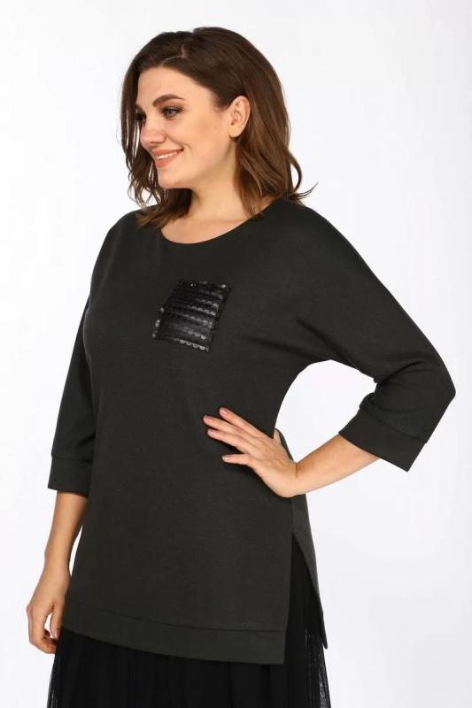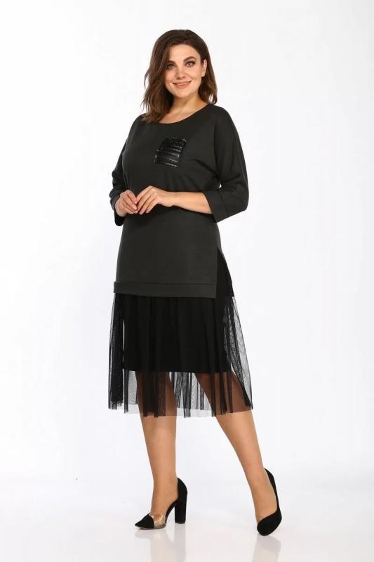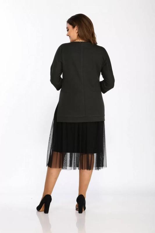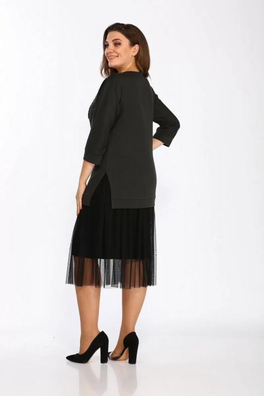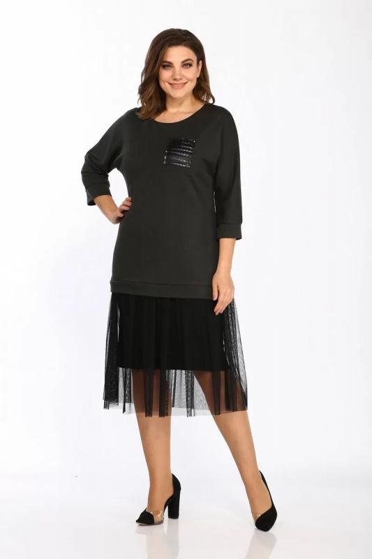 Платье прямое из трикотажа и шифона с боковыми разрезами Lady Style Classic 1457-2 хаки_черный