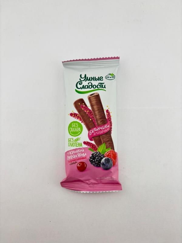 Батончики "Умные сладости" амарантовые с начинкой лесная ягода в глазури без глютена 20 гр.