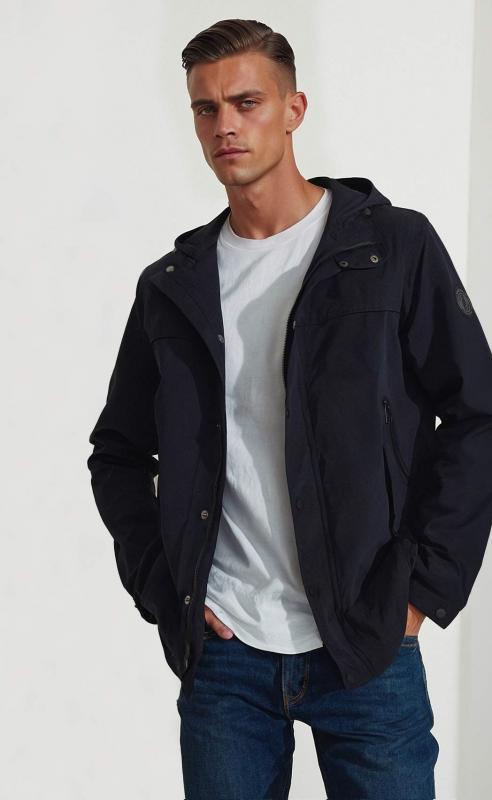 Ветровка мужская с несъемным регулируемым капюшоном F111-1302 тёмно-синяя