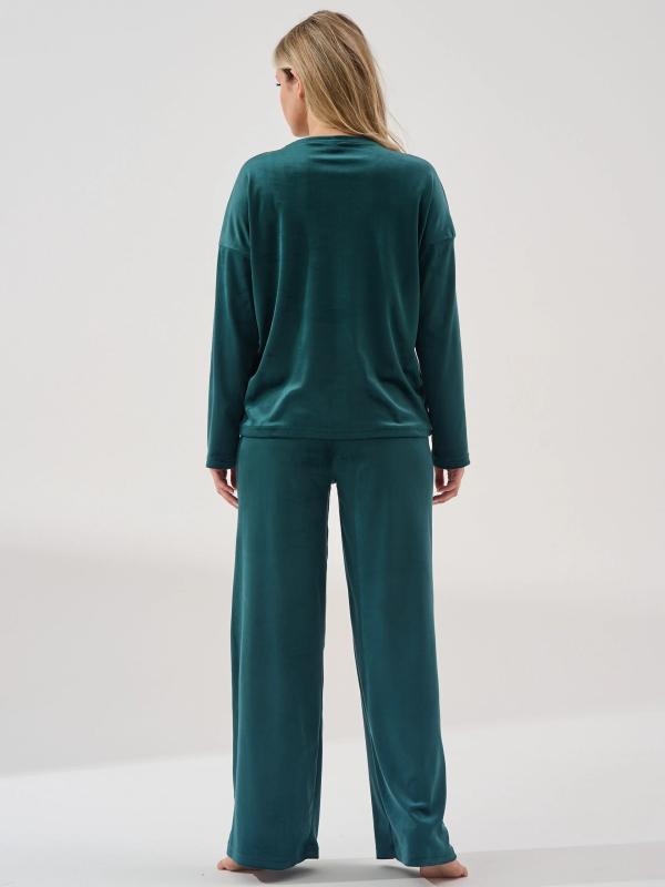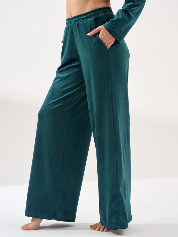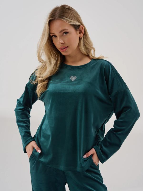 2406-В - Изумрудный состоит из толстовки и свободных брюк палаццо. Костюм отлично подойдёт для офиса и вечерних прогулок.