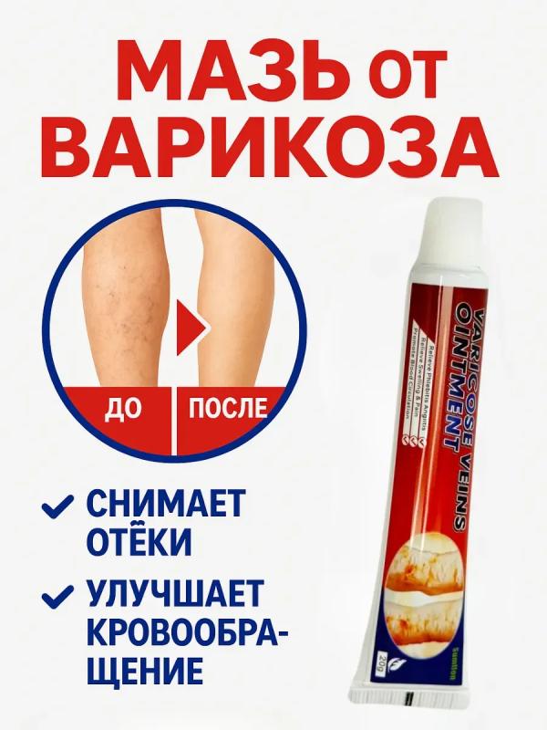 Мазь от варикоза на ногах с травами . Мазь от варикоза — эффективное средство при варикозном расширении вен, венозной сетке, тромбофлебите, капиллярной сетке, отёках, тяжести, зуде, воспалении и сосудистой сетке. Подходит для мужчин и женщин с венозной недостаточностью, для профилактики варикоза, а также при наследственной предрасположенности, сидячей и стоячей работе, после родов и в жару... Мазь: улучшает циркуляцию крови укрепляет стенки сосудов и капилляров уменьшает отёки ног, воспаление вен, болезненные ощущения снимает тяжесть, зуд, жжение борется с сосудистой сеткой и варикозными венами Натуральный состав: экстракты трав, без парабенов, без силикона и отдушек. Подходит для чувствительной кожи, беременных женщин, людей с тонкими капиллярами, после физических нагрузок, при судорогах и усталости ног. Используйте мазь: при выступающих венах, звёздочках на ногах, ломоте как венотоник, средство для улучшения кровотока для снятия отёков после перелётов при судорогах в ночное время для охлажд